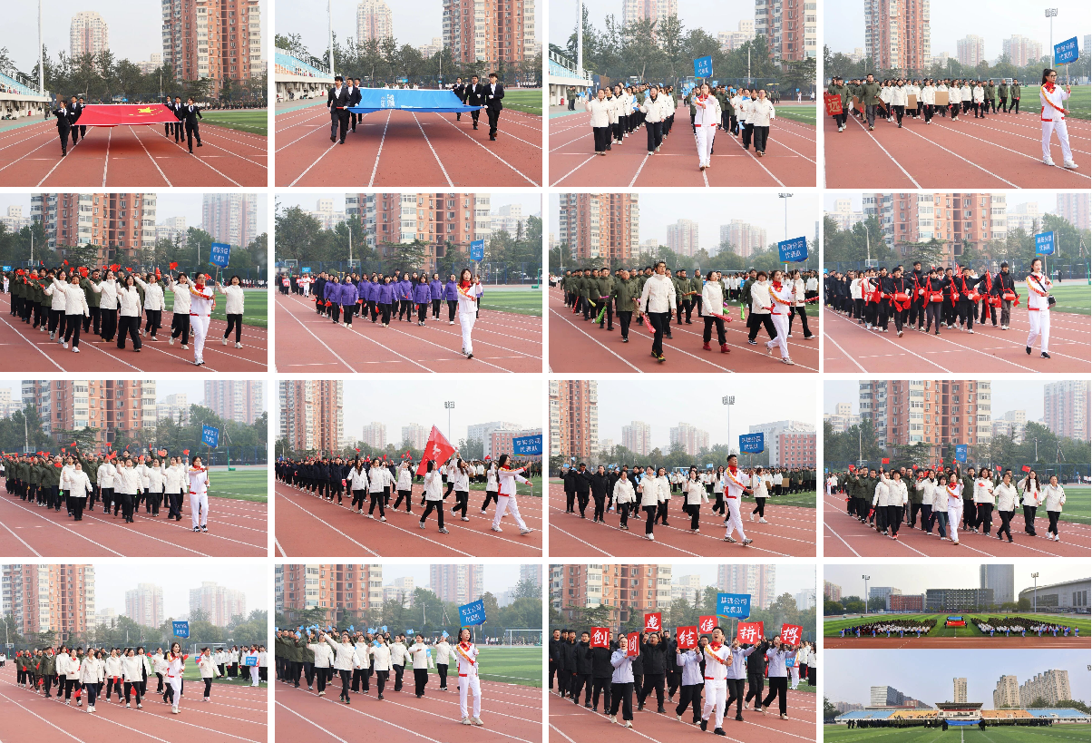 開(kāi)幕式上,國(guó)旗方陣、院旗方陣及各代表隊(duì)依次入場(chǎng)。他們邁著鏗鏘有力的步伐,高呼振奮人心的口號(hào),充分展現(xiàn)了北勘人踔厲奮發(fā)、昂揚(yáng)向上的精神風(fēng)貌。