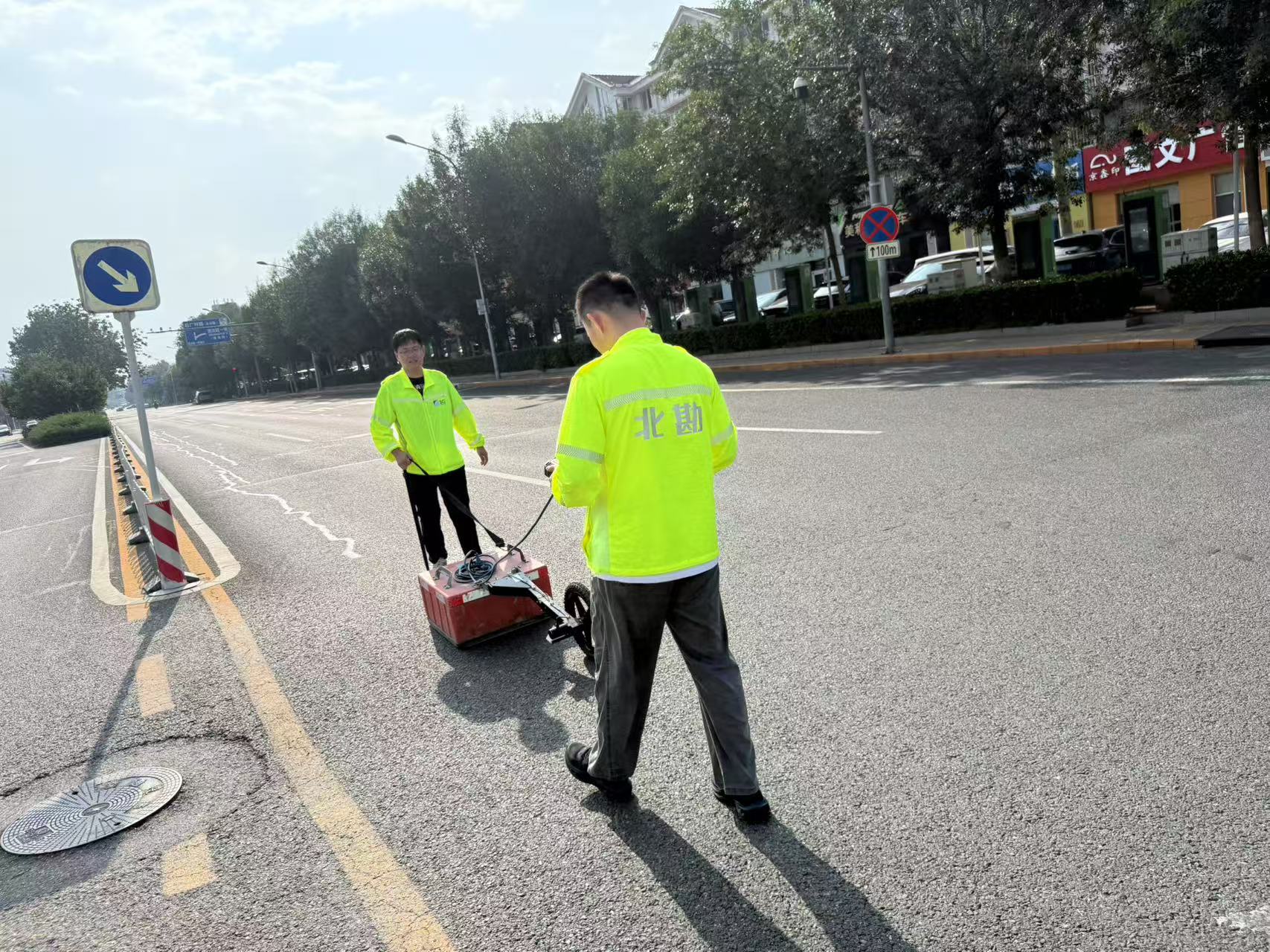 檢測一院工程師在海淀區(qū)某地進行地下病害探測
