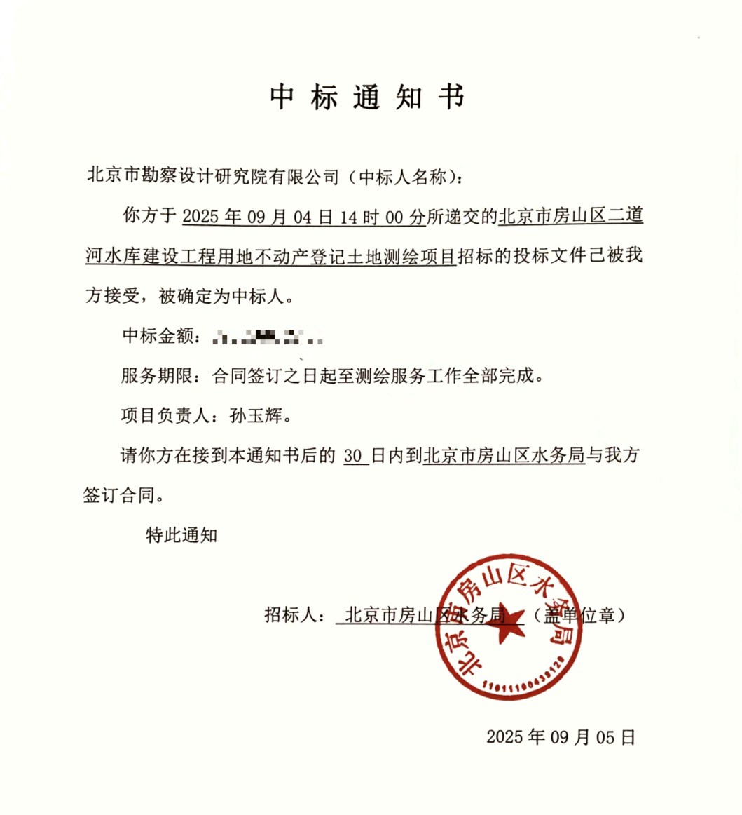 北京市房山區(qū)二道河水庫建設(shè)工程是北京市落實(shí)災(zāi)后恢復(fù)重建規(guī)劃“三年全面提升”目標(biāo)的關(guān)鍵工程。該項目是我院迄今中標(biāo)金額最大的不動產(chǎn)登記土地測繪項目,也是首次承接的大型水庫類測繪工程,標(biāo)志著在新興水利領(lǐng)域?qū)崿F(xiàn)了里程碑式突破,為業(yè)務(wù)多元化發(fā)展落下關(guān)鍵一子。