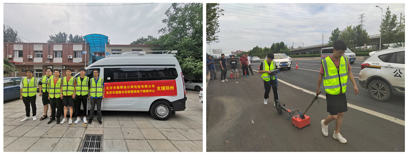 洪水退卻,恢復(fù)正常生產(chǎn)生活的工作次第展開,為預(yù)防水患后道路塌陷等次生災(zāi)害的發(fā)生,北京市勘察設(shè)計(jì)研究院有限公司(北京市道路與市政管線地下病害工程技術(shù)研究中心)地下病害探測團(tuán)隊(duì)主動請纓馳援鄭州開展地下病害探測工作。按照鄭州市有關(guān)方面的工作部署,北勘院地下病害探測團(tuán)隊(duì)連夜組織人員、設(shè)備進(jìn)場,對鄭開大道開展空洞及地下病害探測,進(jìn)行“健康體檢”。時間就是生命,北勘院地下病害探測團(tuán)隊(duì)晝夜奮戰(zhàn),采用先進(jìn)的三維雷達(dá)探測設(shè)備對鄭開大道進(jìn)行全面的探地雷達(dá)檢測,以查明由于強(qiáng)降雨后可能導(dǎo)致的道路下方空洞、疏松區(qū)等地下病害,以及暴雨對沿線下穿隧道可能產(chǎn)生的隧道結(jié)構(gòu)性損傷。鄭開大道是連接鄭州市和開封市的城市快速路、更是鄭州市搶險(xiǎn)救災(zāi)的交通要道,北勘院地下病害探測團(tuán)隊(duì)自7月26日進(jìn)場,目前已完成12公里道路的路面探測工作,為鄭州災(zāi)區(qū)搶險(xiǎn)救災(zāi)的順利進(jìn)行及災(zāi)后基礎(chǔ)設(shè)施的恢復(fù)建設(shè)提供扎實(shí)的技術(shù)支撐和保障,展現(xiàn)了中國勘察設(shè)計(jì)企業(yè)的責(zé)任擔(dān)當(dāng)!