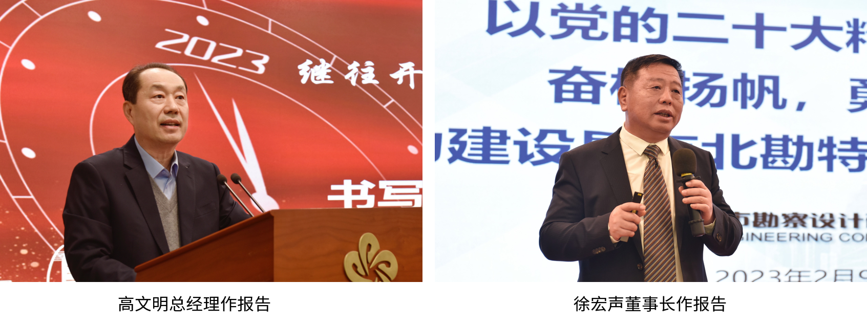 高文明總經(jīng)理作《繼往開(kāi)來(lái) 守正創(chuàng)新 團(tuán)結(jié)奮斗 一往無(wú)前 在新征程上更加奮發(fā)有為書寫新時(shí)代高質(zhì)量發(fā)展的北勘華章》報(bào)告,他指出,2022年我院全面貫徹落實(shí)黨的二十大精神,高效統(tǒng)籌疫情防控和企業(yè)發(fā)展,積極應(yīng)對(duì)超預(yù)期多重因素沖擊,實(shí)現(xiàn)了經(jīng)營(yíng)規(guī)模的逆勢(shì)增長(zhǎng),保持了企業(yè)發(fā)展的良好態(tài)勢(shì)。在這極不平凡的一年里,全體北勘人迎難而上、知難而進(jìn)、攻堅(jiān)克難,在新時(shí)代發(fā)展的賽道上跑出了“北勘速度、北勘效率、北勘效益”,彰顯了“北勘品質(zhì),北勘形象、北勘品牌”。