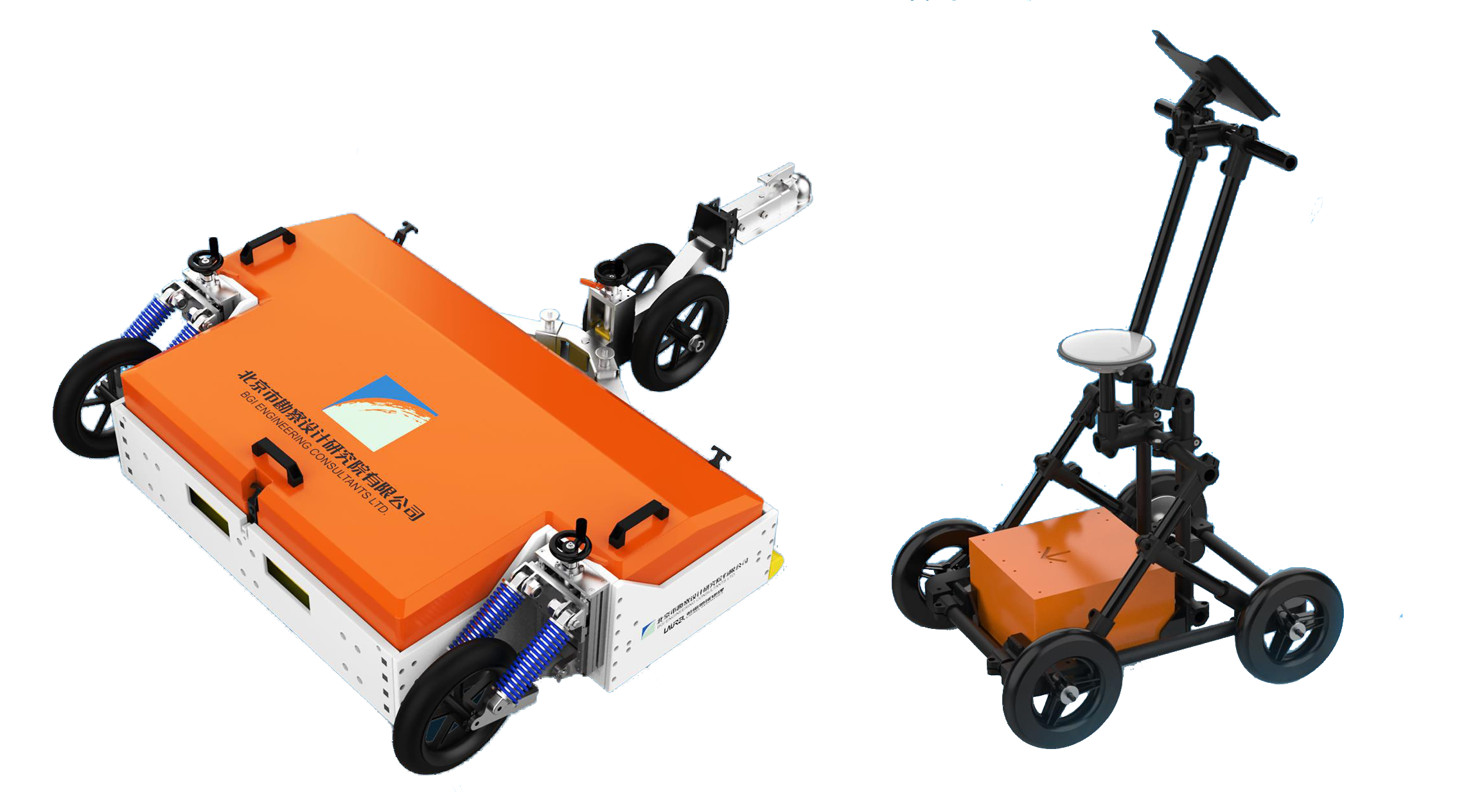 便攜式復合材料雷達手推車針對車輛無法通行的道路以及重要風險點復測等應用場景開展研制,具有輕巧靈活的突出特點,可折疊,采用無磁材質,可兼容多種頻率天線。