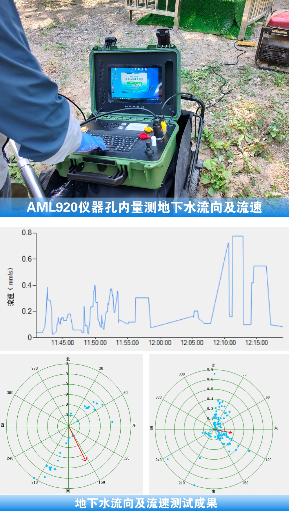 通過“搜集場區(qū)抽水試驗等水文地質(zhì)資料、建立長期水位觀測孔、三點法測地下水流向、AML920儀器孔內(nèi)量測地下水流向及流速”等綜合手段,查明了場區(qū)地下水的動態(tài)規(guī)律、流向及流速。