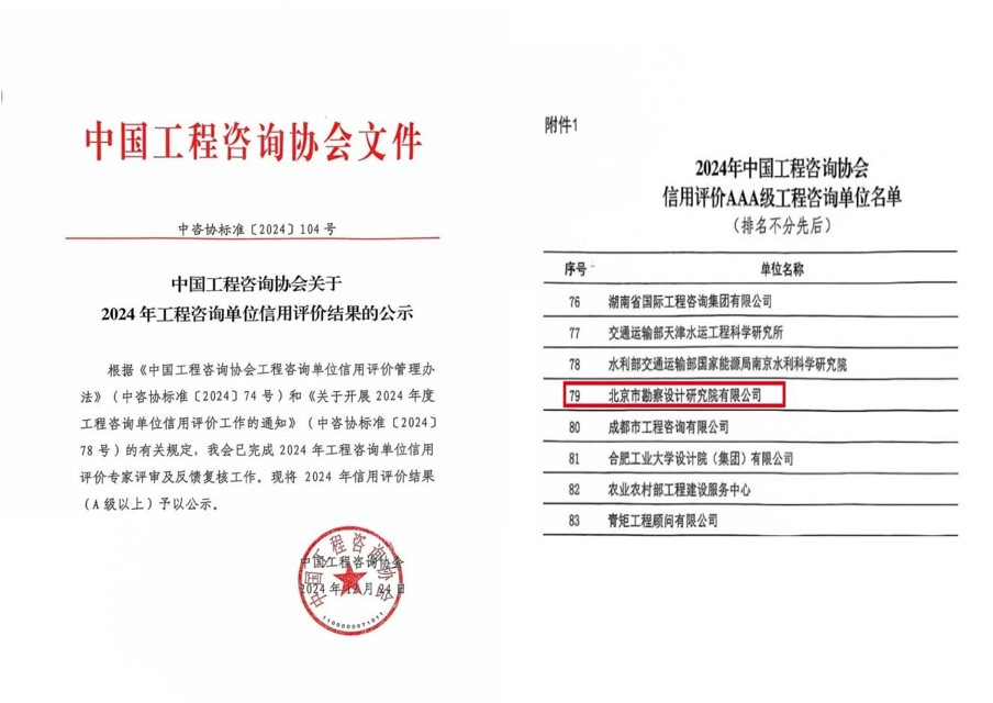 12月25日,在中國工程咨詢協(xié)會(huì)開展的2024年工程咨詢單位信用評(píng)價(jià)工作中,我院獲得“2024年中國工程咨詢行業(yè)AAA級(jí)信用企業(yè)”榮譽(yù)稱號(hào)。