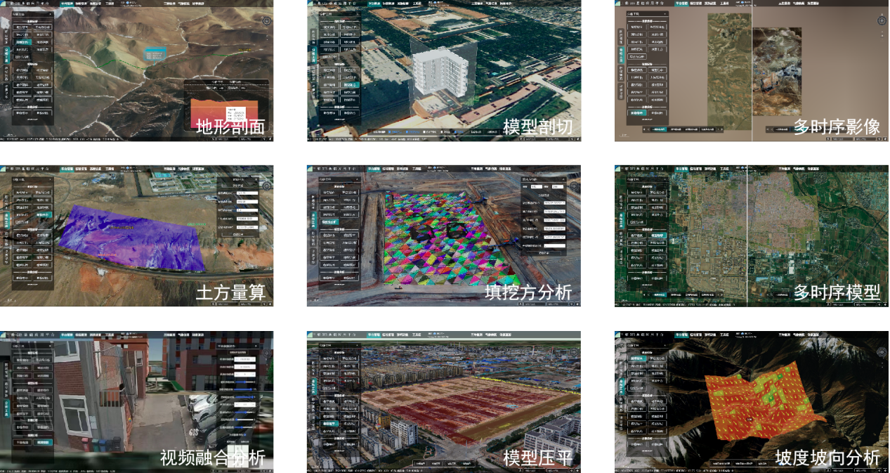 BGIS三維時(shí)空信息應(yīng)用平臺以影像、地形、模型、視頻等多源數(shù)據(jù)為基礎(chǔ),構(gòu)建出時(shí)空數(shù)字底座,該平臺目前已包含30余項(xiàng)空間分析功能模塊。通過GIS空間分析算法,實(shí)現(xiàn)地形剖面分析、模型剖切分析、土方量算、填挖方分析、多時(shí)序影像及模型、視頻融合等強(qiáng)大的GIS分析功能,為工程應(yīng)用提供強(qiáng)有力技術(shù)支撐。